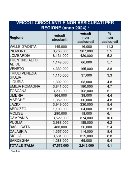 A livello regionale, in Trentino-Alto Adige circolano 66mila veicoli privi di polizza, pari al 5,7% del totale. Un dato superiore alla media di molte altre province italiane e che pone la nostra area ai primi posti per crescita di questa criticità.